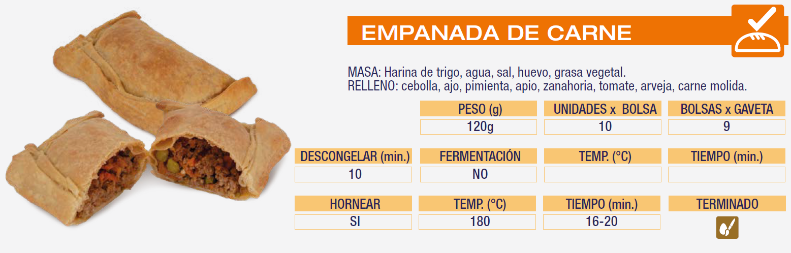 Disfruta de la comodidad de nuestras empanadas de carne semielaboradas, listas para hornear sin necesidad de fermentación. Con una durabilidad de hasta 90 días en almacén, ofrecen un sabor auténtico y una textura perfecta, ideal para panaderos que buscan calidad y practicidad en cada preparación.